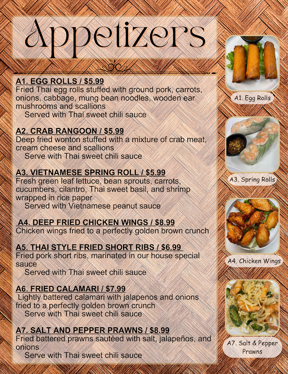 For starters, indulge in the Satay Chicken, grilled to perfection and paired with a rich peanut sauce. The chef’s special, Yum Ta Le, is a zesty seafood salad that sings of freshness with every bite.